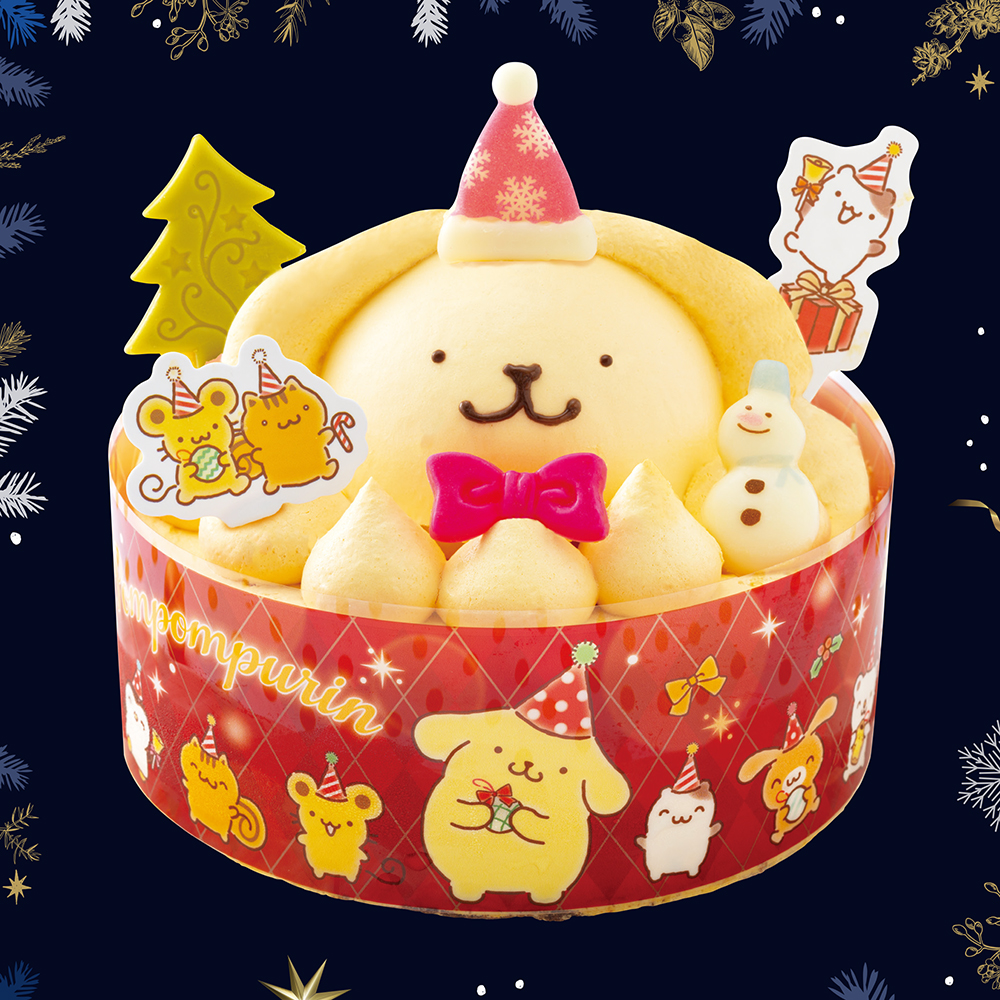 大人気キャラクターのポムポムプリンの世界観をクリスマスケーキで表現しました。プリンクリームに合わせたカラメルソースがアクセント。