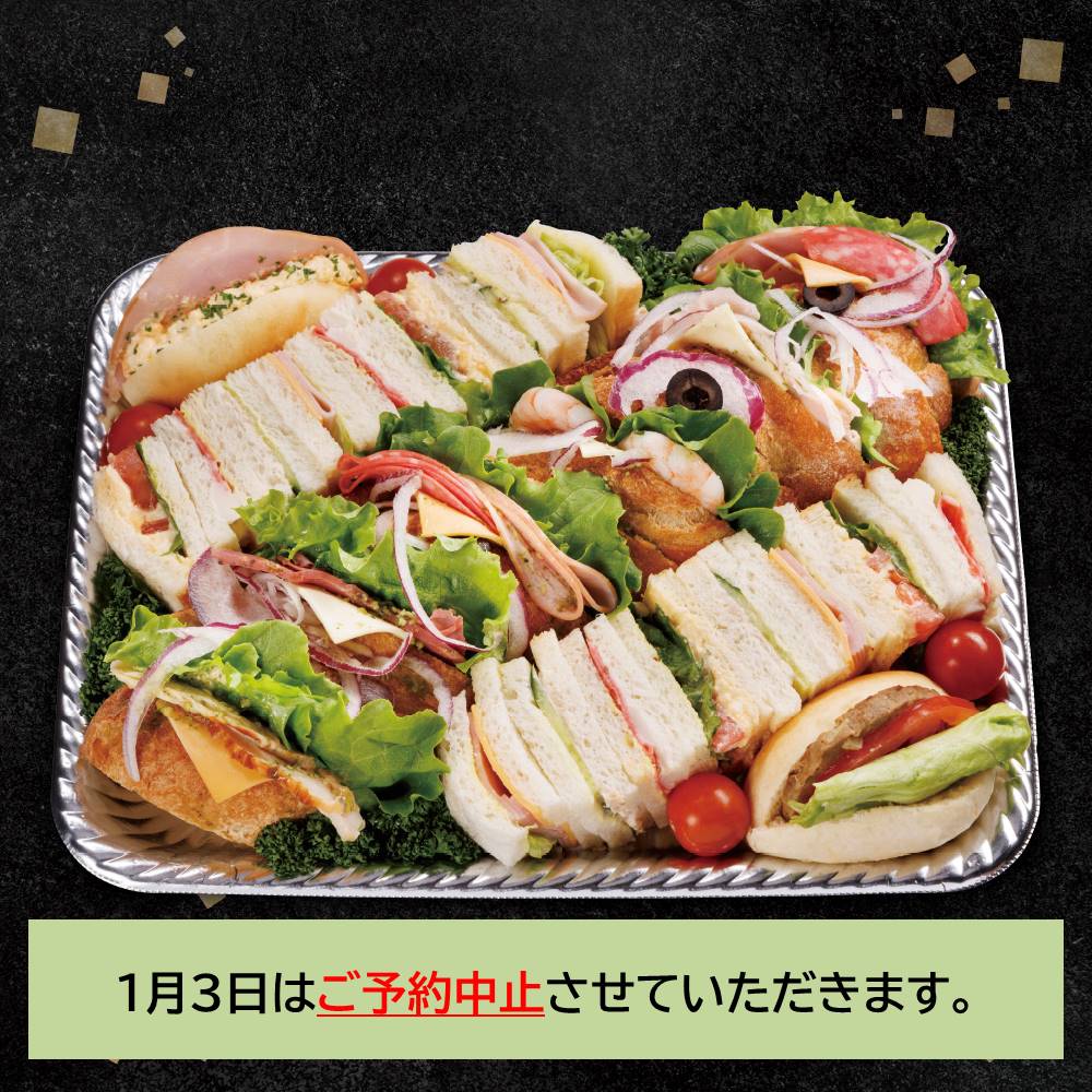 ・ミックスサンド・カスクートアコーディオン(2種ハム・ポーク、ビーフパストラミ・ローストチキン・海老)・ミニハンバーガー