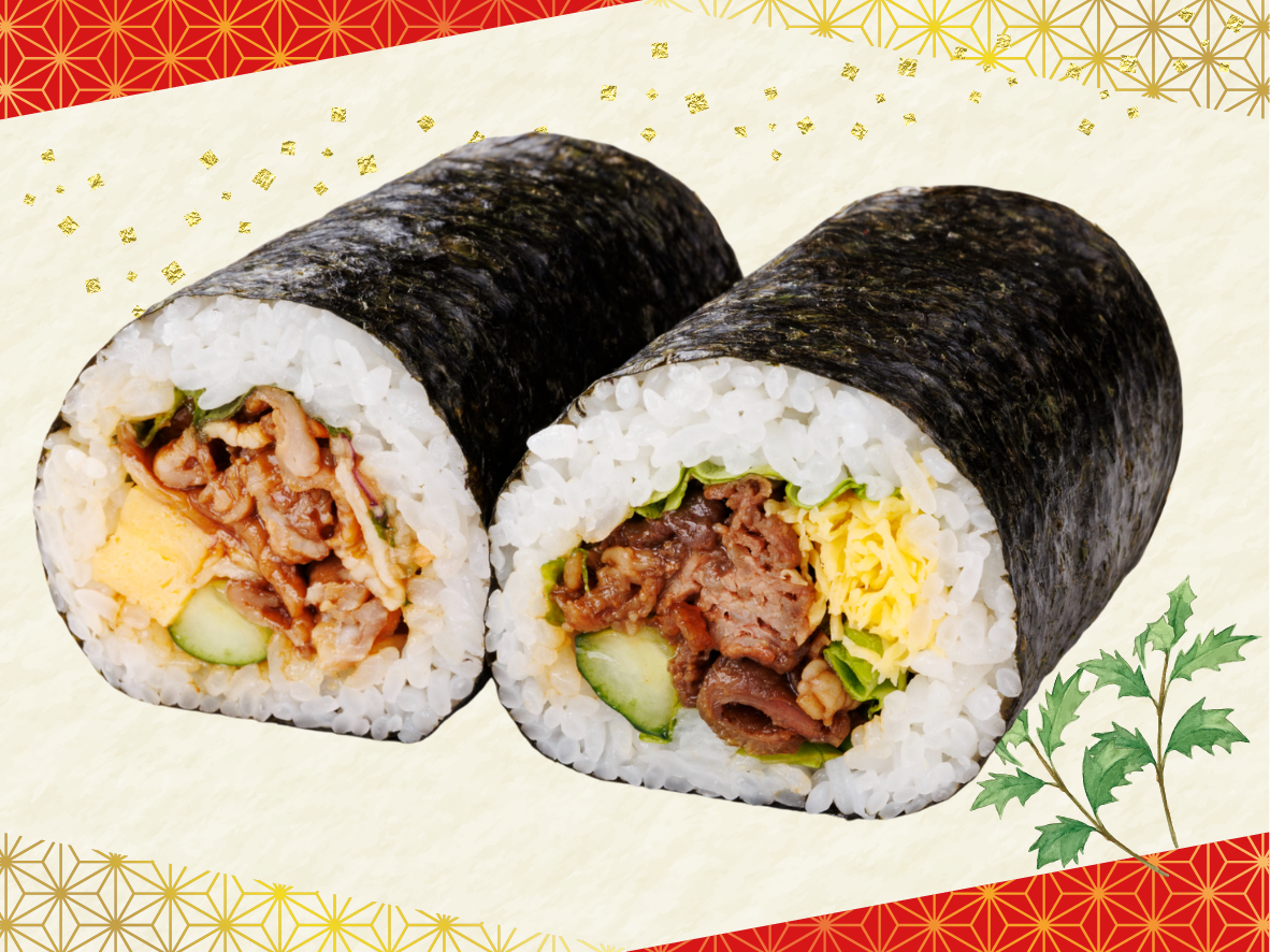 E2633黒毛和牛と黒豚の肉盛り恵方巻セット(ハーフサイズ)