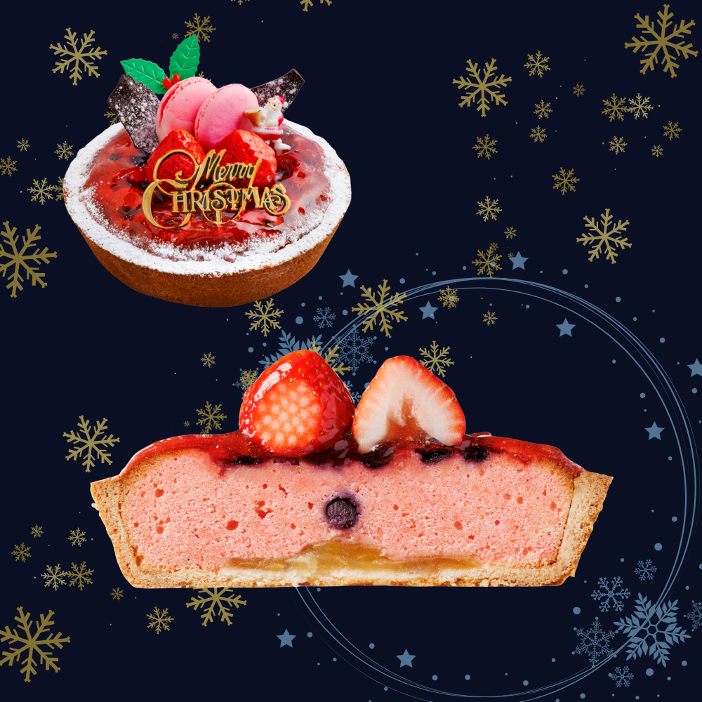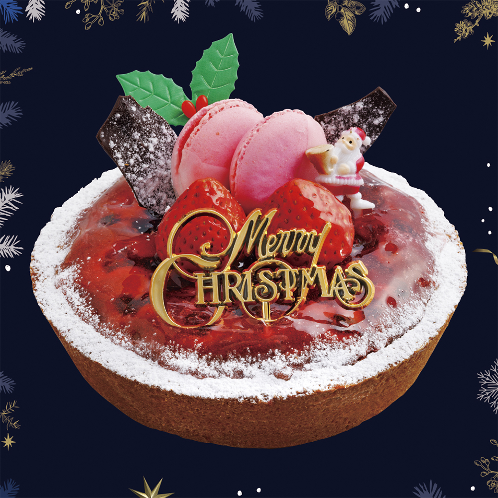 4種のベリー(イチゴ、クランベリー、ラズベリー、ブルーベリー)をトッピングし焼き上げた華やかなケーキ。
