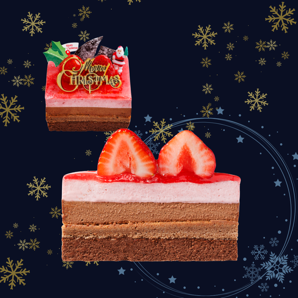 ベリーの爽やかな味わいのクリームと濃厚な生チョコクリームとアーモンドスポンジのソフトな口当たりのケーキ。