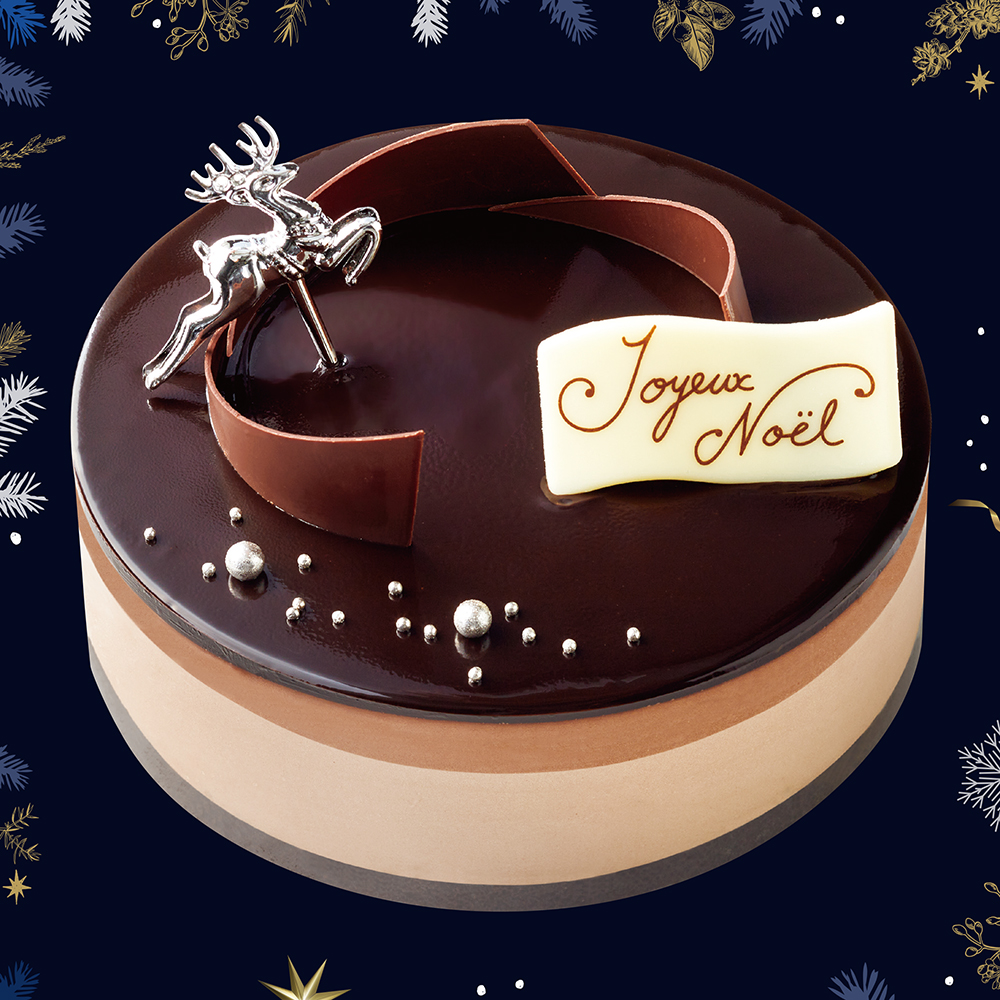 ベルギー産のミルクチョコ・ビターチョコ・ホワイトチョコを使用したムースケーキにくるみ入りチョコクランチをサンドしました。