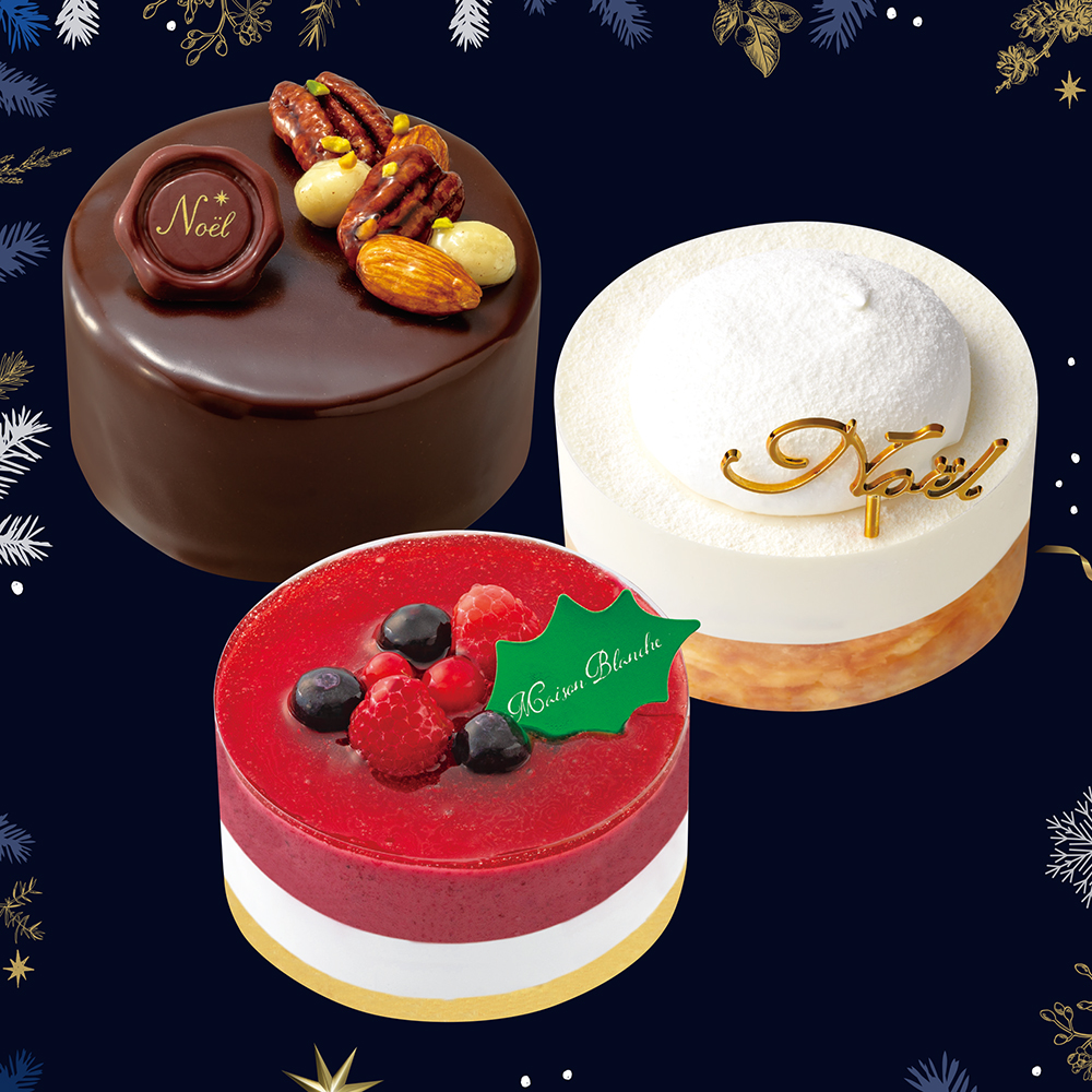 4種のナッツを盛り付けたチョコレートケーキ・赤い果実のベリームース・北海道クリームチーズを使用した2層のチーズケーキの詰め合せです。