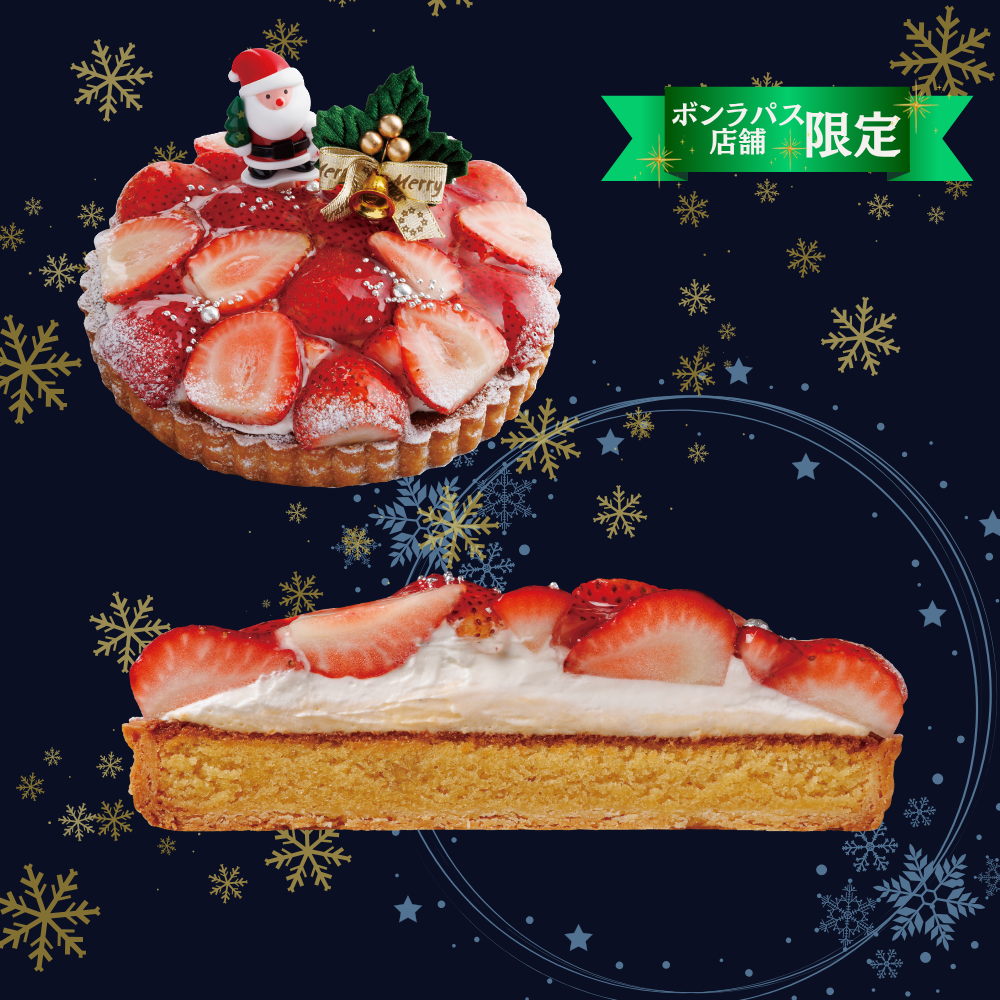 アーモンド風味の豊かさにこだわり一つ一つ丁寧に焼き上げたタルト生地にMOMOTOSEのオリジナル生クリームとカスタードクリームをバランス良くのせてたっぷりの苺で幸せと美味しさを感じて頂けるXmasケーキに仕上げました。
